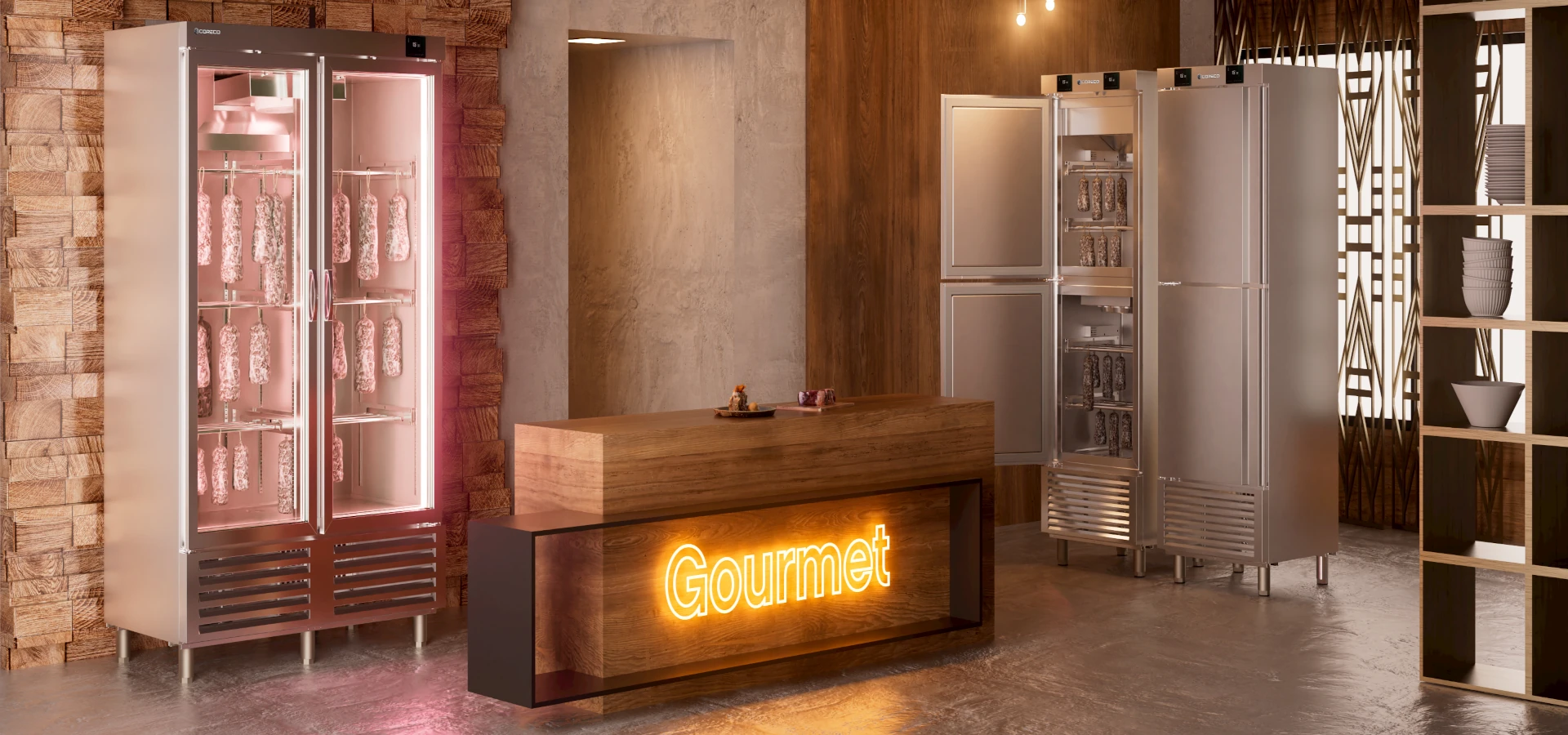 , valoramos la tradición charcutera y sumamos innovación. Nuestros armarios de curación de embutidos están diseñados para mejorar las técnicas tradicionales con la última tecnología.