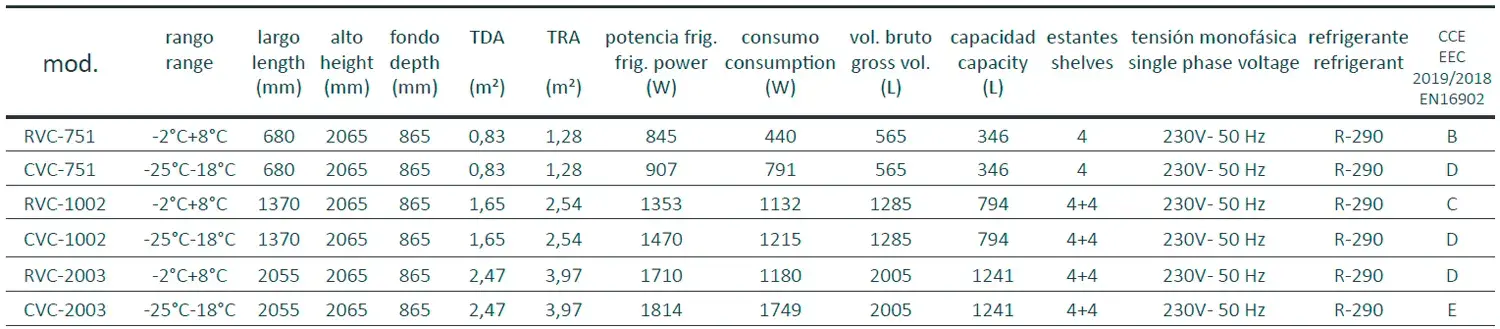 Um die Haltbarkeit der Produkte zu verlängern, sollten sie bei einer optimalen Temperatur aufbewahrt werden, mit Umgebungen (je nach Modell) von +15° bis +32°C -2°C bis +8°C für gekühlte Produkte, -20°C bis -15°C für gefrorene Produkte und -25°C bis -18°C für die anspruchsvollsten Bedürfnisse, die eine hohe Leistung erfordern.