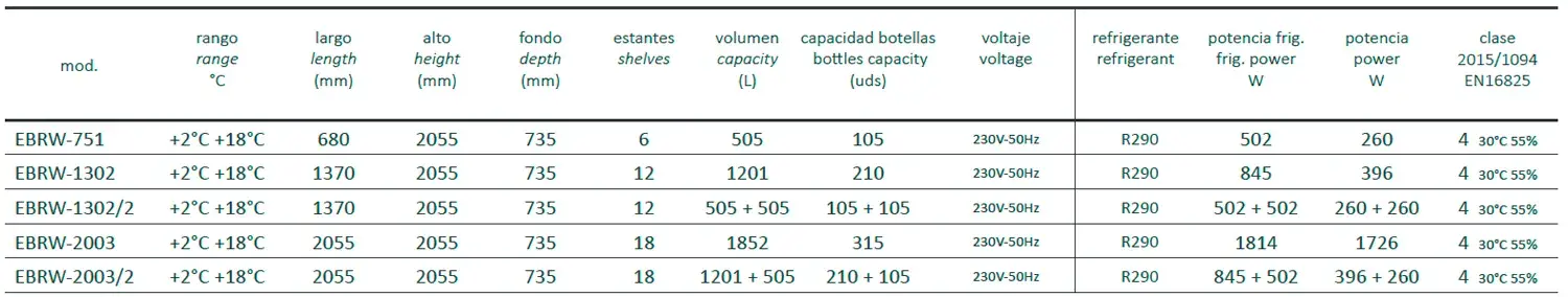 - EBRW-1302/2 and 2003/2two independent departments, with temperature regulation in the range +2°C +18°C.