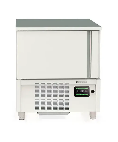 Un refroidisseur à air est un appareil qui abaisse rapidement la température des aliments. Les refroidisseurs à air sont également connus sous le nom de congélateurs à air comprimé ou de congélateurs à air pulsé. Ils sont généralement dotés de plusieurs étagères où des plateaux d'aliments ou des plateaux de feuilles peuvent être stockés et refroidis à des températures extrêmement basses.