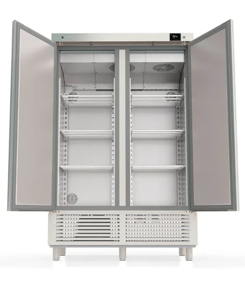 - Puertas de apertura reversible, con sistema de cierre automático y burlete magnético (permanece abierta al superar los 90° de apertura)