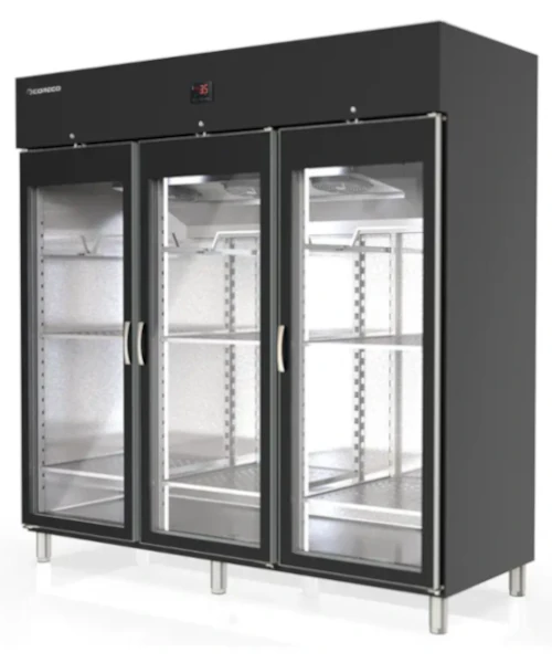 Armarios expositores con temperatura de trabajo dentro del rango -2°+8°C y humedad entre 40% y 90% (sin aporte exterior de agua)