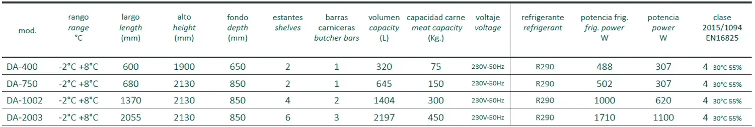 - Control digital de temperatura y humedad, con eficiente gestión del consumo de energía y HACCP por conexión WIFI o BT (opcionales)