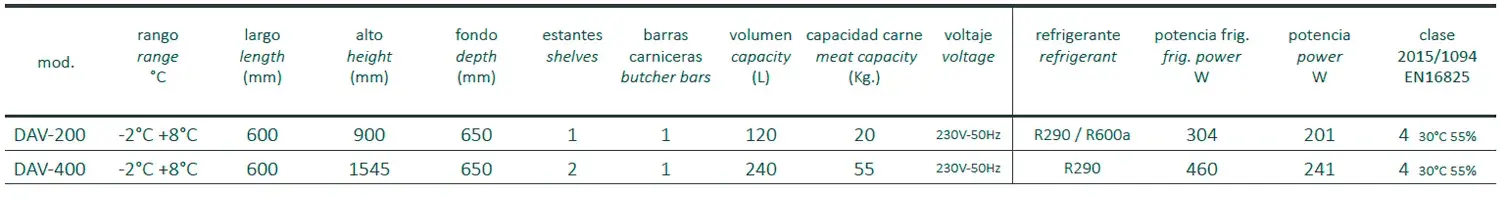 - Control digital de temperatura y humedad, con eficiente gestión del consumo de energía y HACCP por conexión WIFI o BT (opcionales)